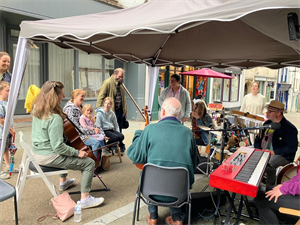Epiphany enjoyed a wonderful weekend in Wells and Shepton Mallett (Somerset) on 18th & 19th July. On the Friday we played Sound Portraits in the grounds of the Bishop's Palace and Gardens in Wells, then on the Saturday we played Sound Portraits in the High Street of Shepton Mallett, followed by an evening 'The Space' event in a stunning outdoor setting near Shepton.