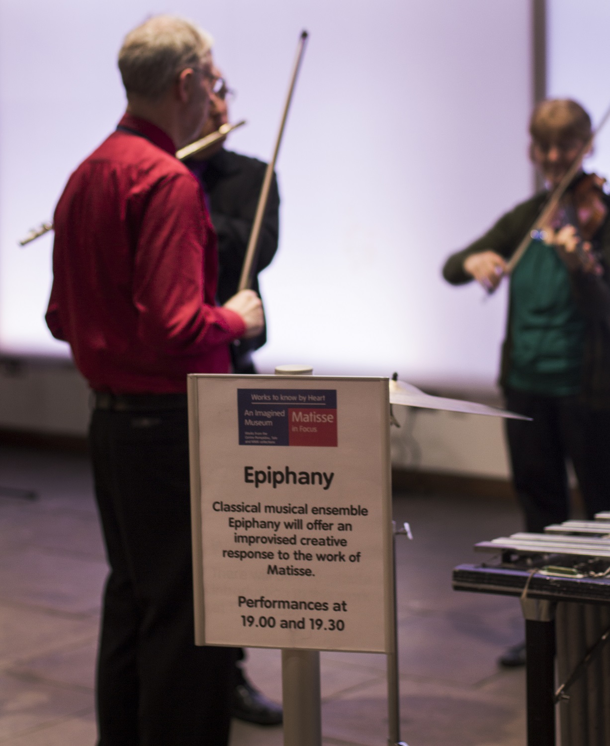 Epiphany visited Tate Modern in Liverpool on 19th November 2015. We were asked to play an improvised response to 'The Snail' by Henri Matisse. We gave two 7-8 minute performances at the opening 2 major exhibitions featuring Henri Matisse and another entitled 'An Imagined Museum'. We'll be returning to the Gallery to perform again in 20th February 2016.