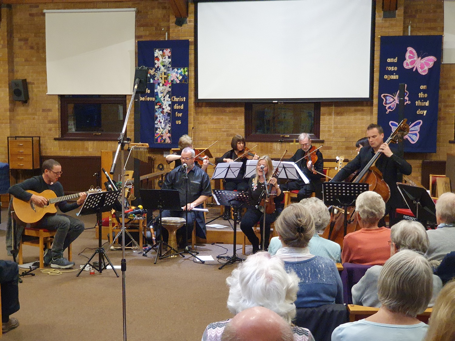 Epiphany enjoyed putting on another of their Sunday Evening Coffee Concerts at Poynton Methodist Church on 28th April to a large, enthusiastic audience. We performed an evening of Irish Celtic music featuring Nigel Cameron (Irish Whistles/vocals), Julie Cameron-Hall (Fiddle/vocals), Phil Hart (guitar) and other local Epiphany friends.