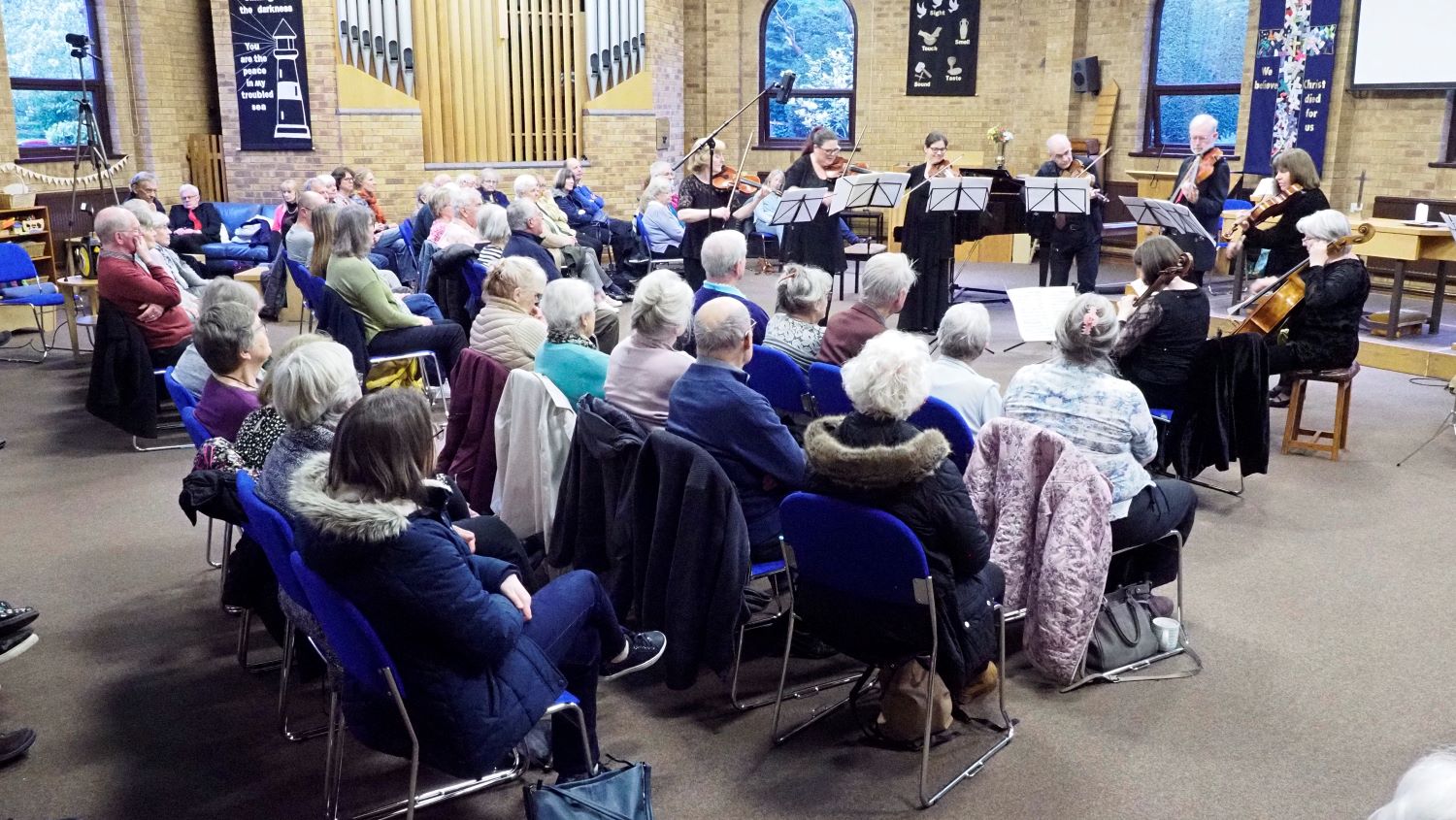 Epiphany performed another Sunday Evening Coffee Concert at Poynton Methodist Church at 7.30pm. The programme included two of the most loved pieces in the chamber music repertoire: Mendelssohn's Octet for strings and Bach's Brandenburg Concerto no 3. Video of the Mendelssohn Octet above and photos below by Andrew Whettam.