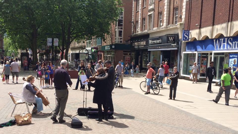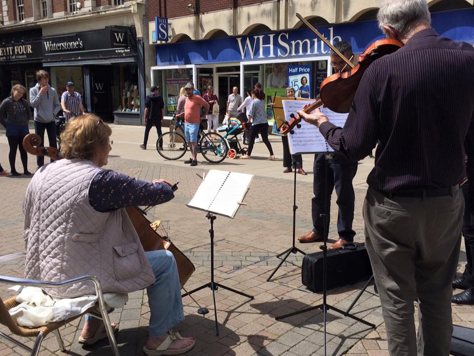 Epiphany gave a light classical concert in Great Gransden (Cambs) on 2nd July evening and then played in an arcade, the streets and a pub in Peterborough town centre on 3rd July.