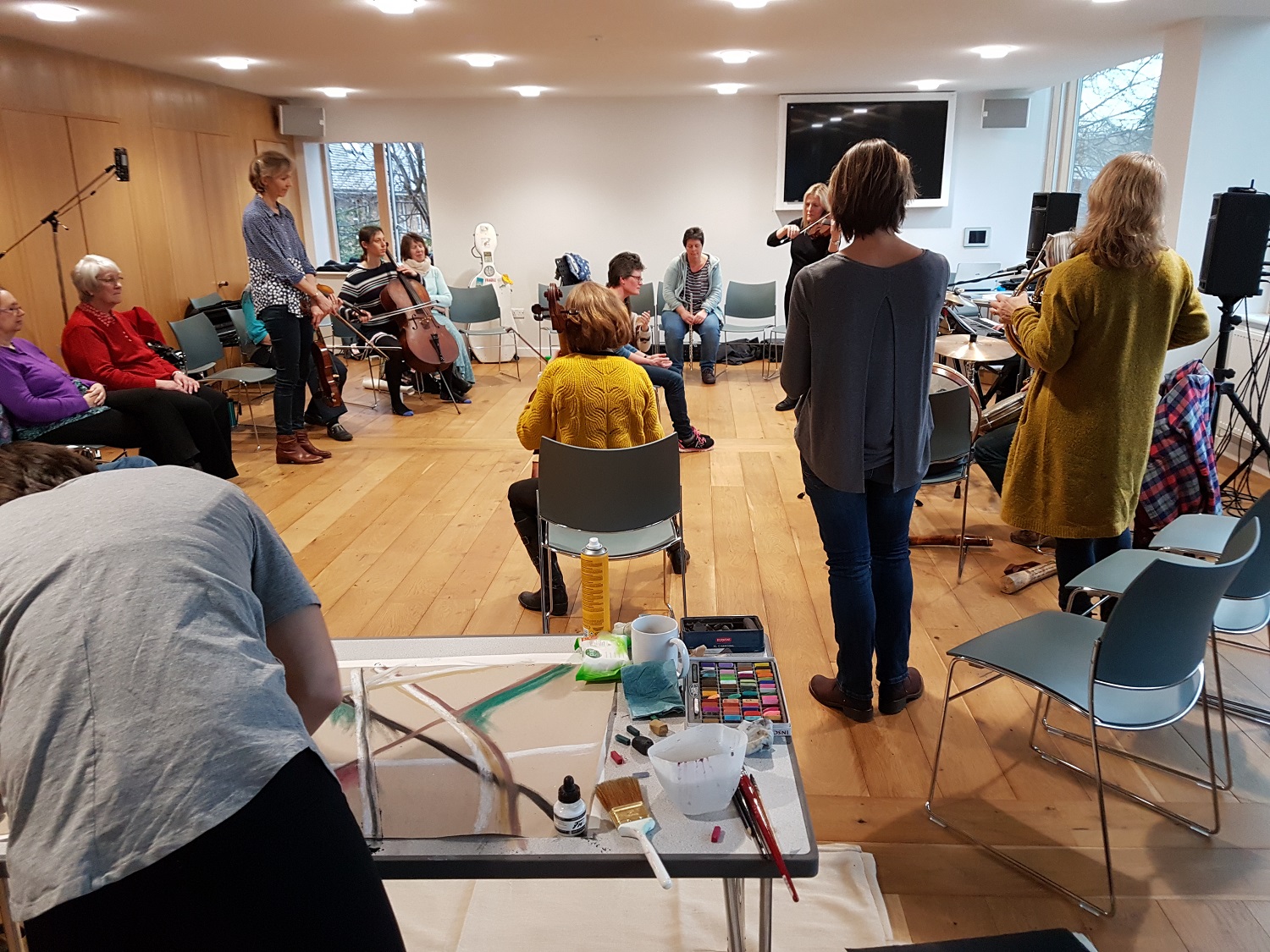 Epiphany led a training day with other musicians at Milmead Baptist Church in Guildford, including Sound Portraits and an evening Happening. We were privileged to again work alongside visual artist Tamara Jackson.
