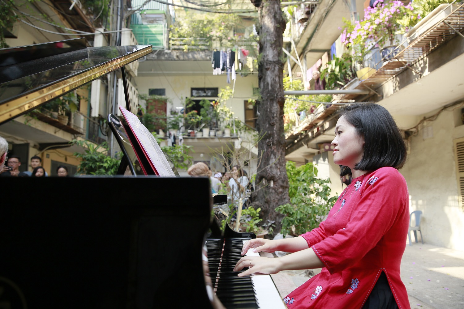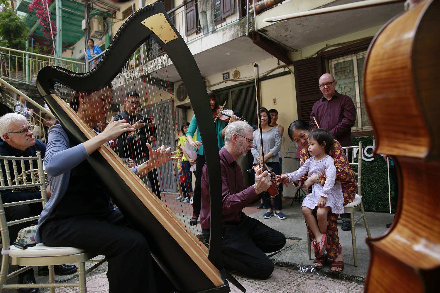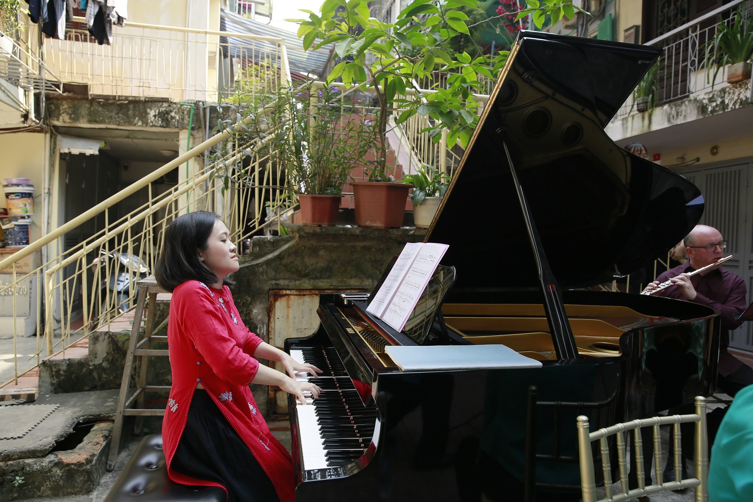 Epiphany had a wonderful time in Vietnam collaborating with the talented young Vietnamese pianist, Trang Trinh. This visit took years of planning and involved some exciting concerts in Hanoi including a new piece, specially written by composer Peter Richards for Trang and Epiphany featuring Vietnamese folk tunes. We also offered Sound Portraits at several of the events. Highlights included a morning playing in a courtyard right in the heart of a local cummunity in Hanoi and a sold-out performance in Hanoi Opera House.