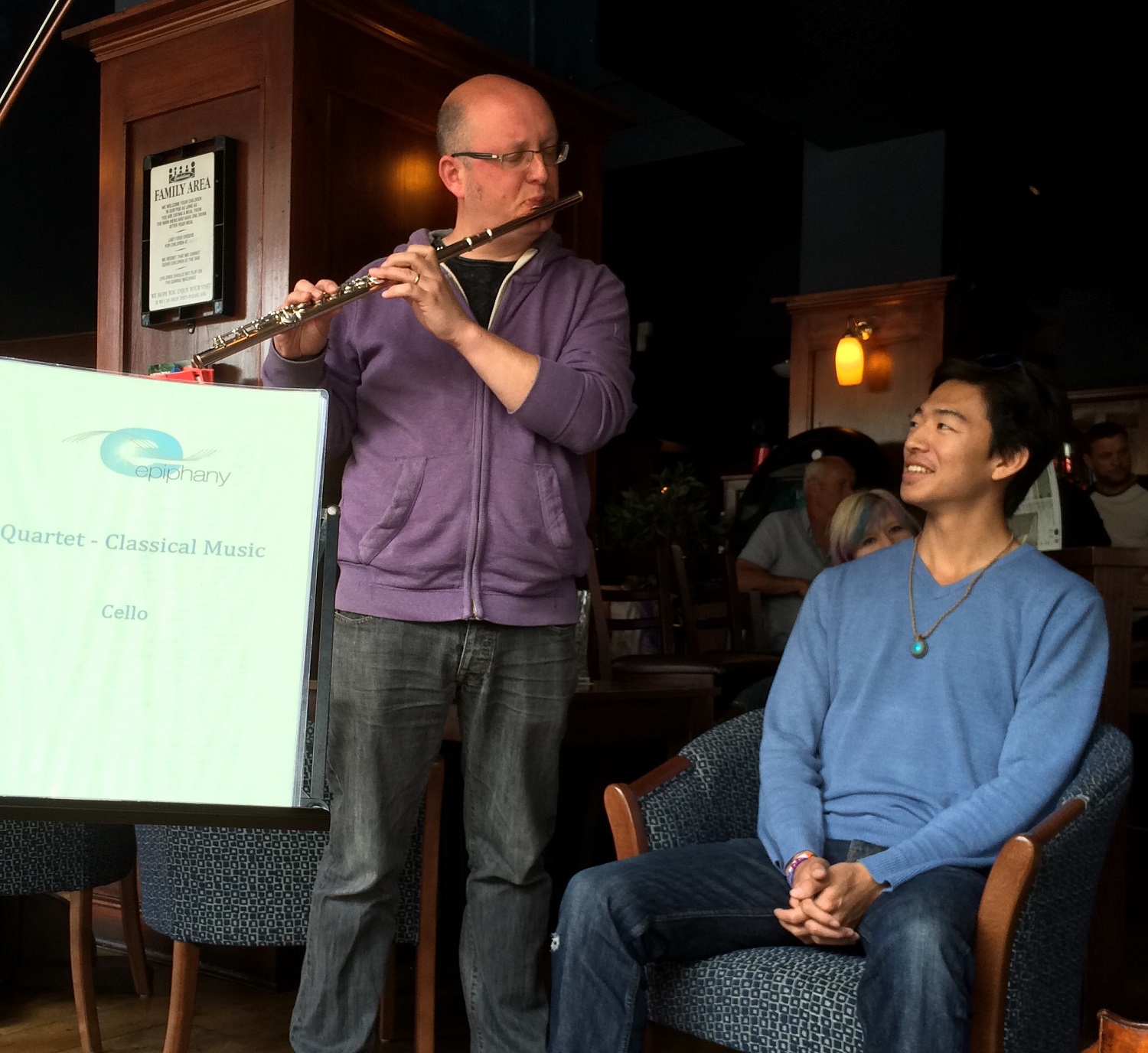 Epiphany is often involved in community events, including classical concerts and Sound Portraits for businesses, drop-in centres, churches, care homes or day centres, hospitals and hospices, coffee shops and pubs, in arcades and on the streets - as well as private functions.