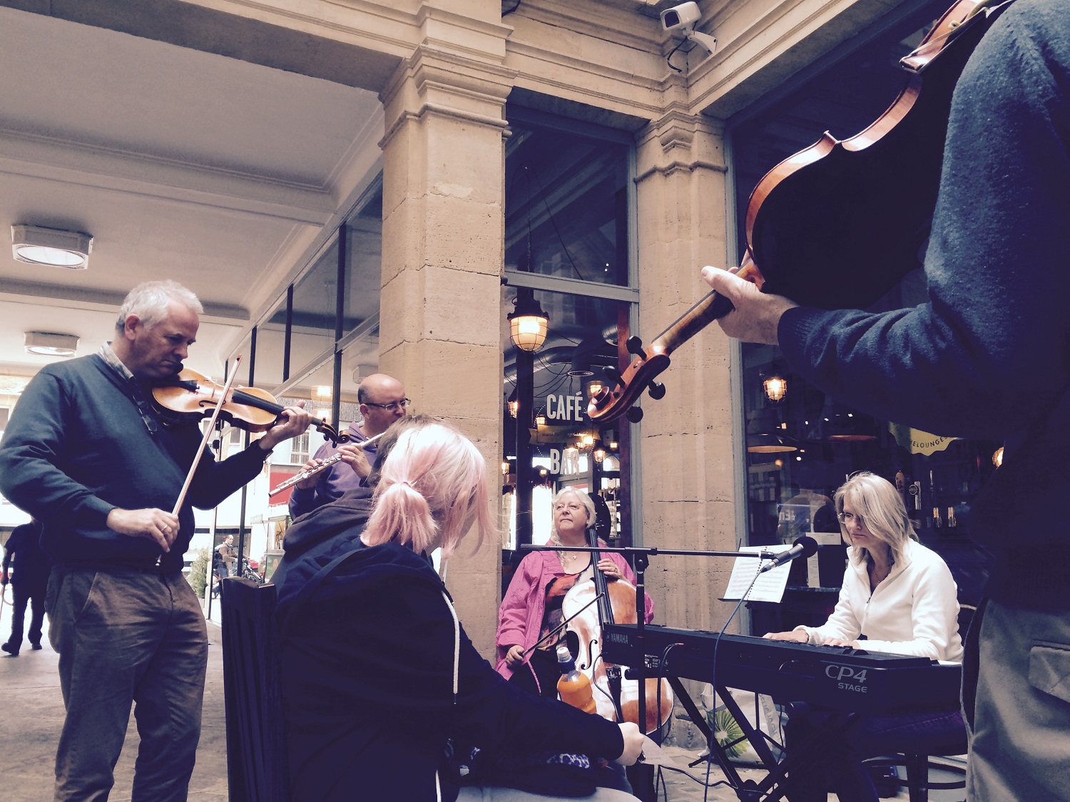 Epiphany gave a light classical concert in Great Gransden (Cambs) on 2nd July evening and then played in an arcade, the streets and a pub in Peterborough town centre on 3rd July.