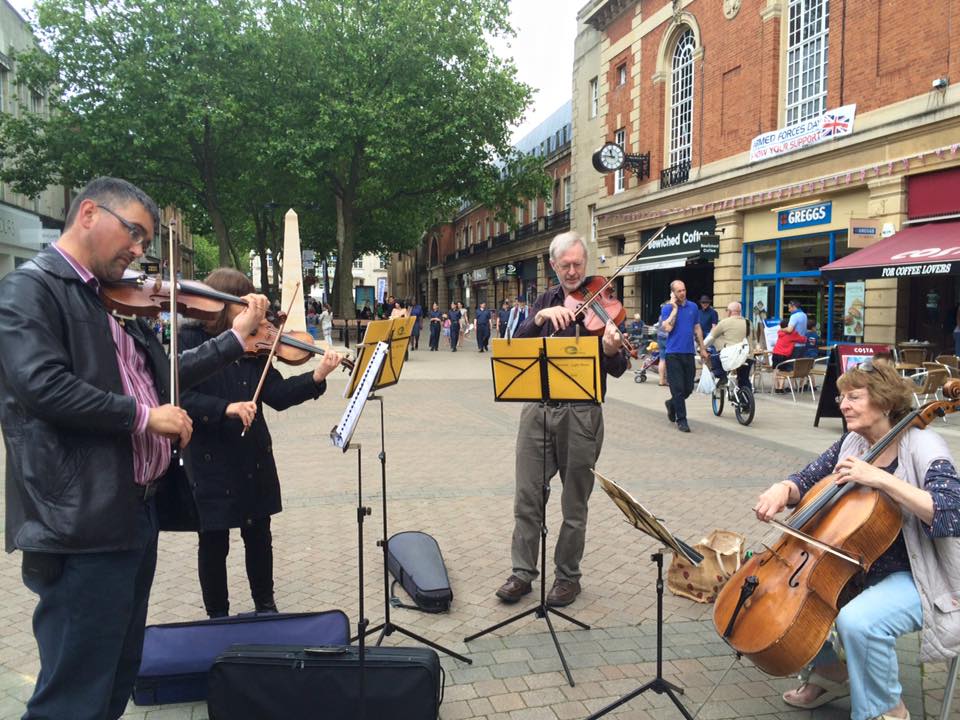Epiphany gave a light classical concert in Great Gransden (Cambs) on 2nd July evening and then played in an arcade, the streets and a pub in Peterborough town centre on 3rd July.