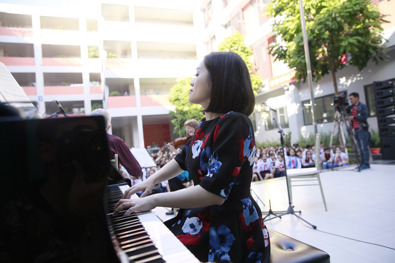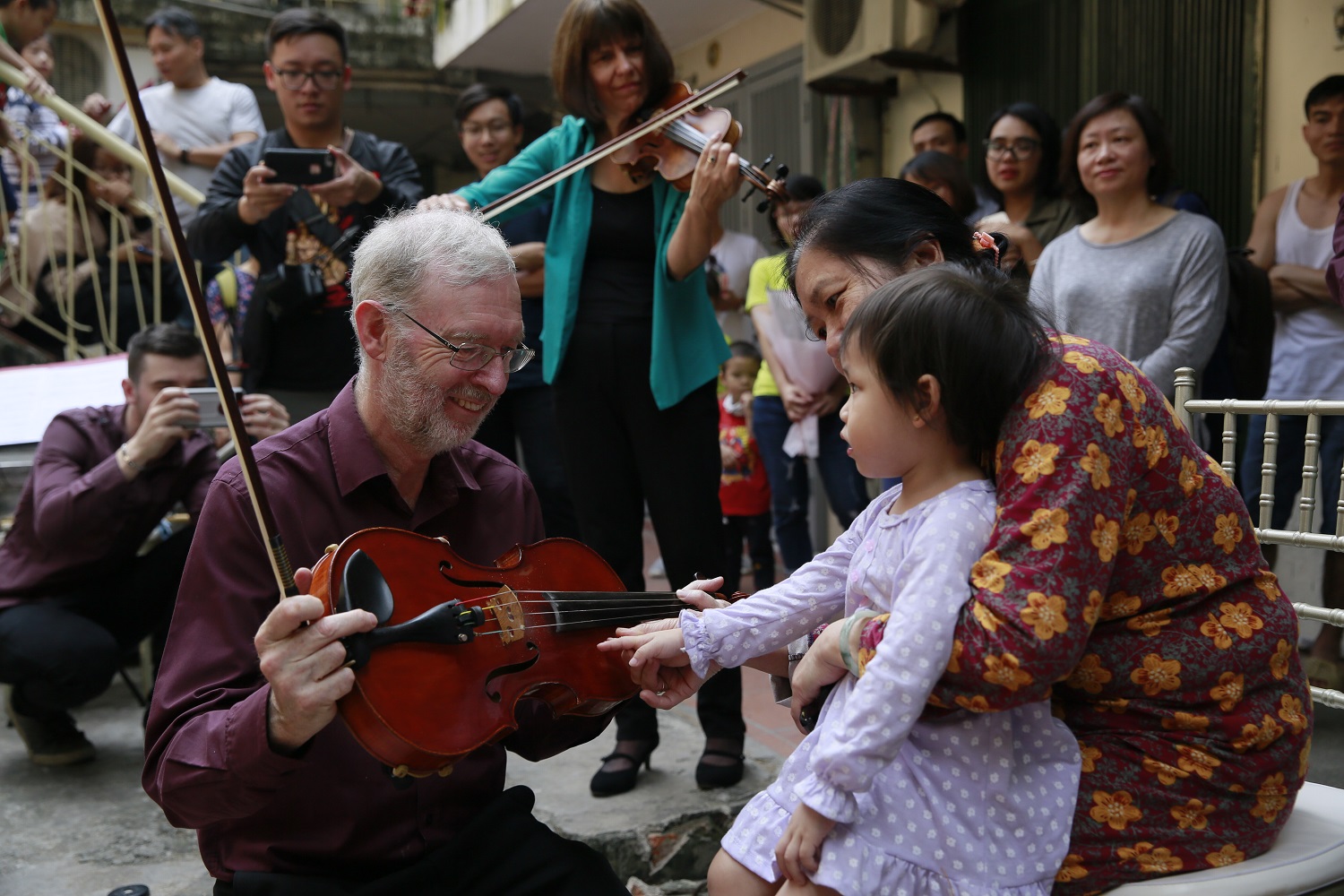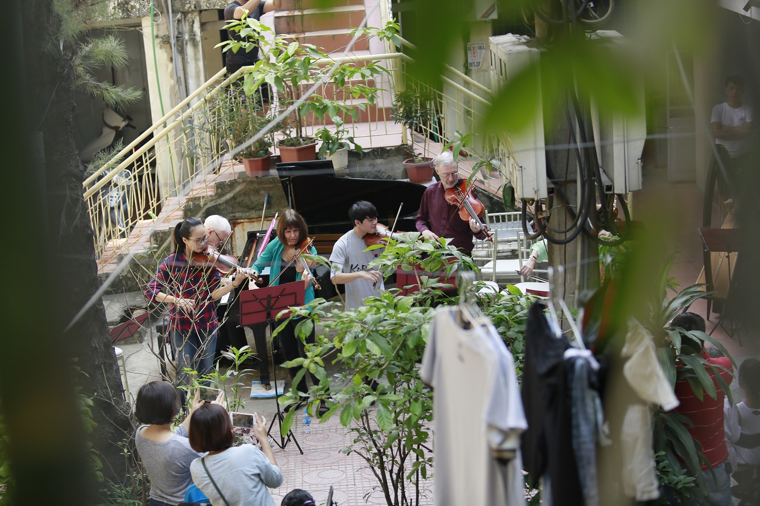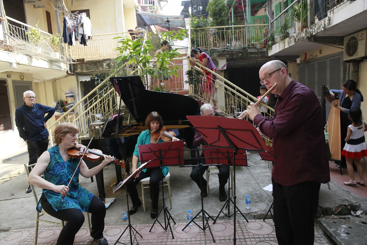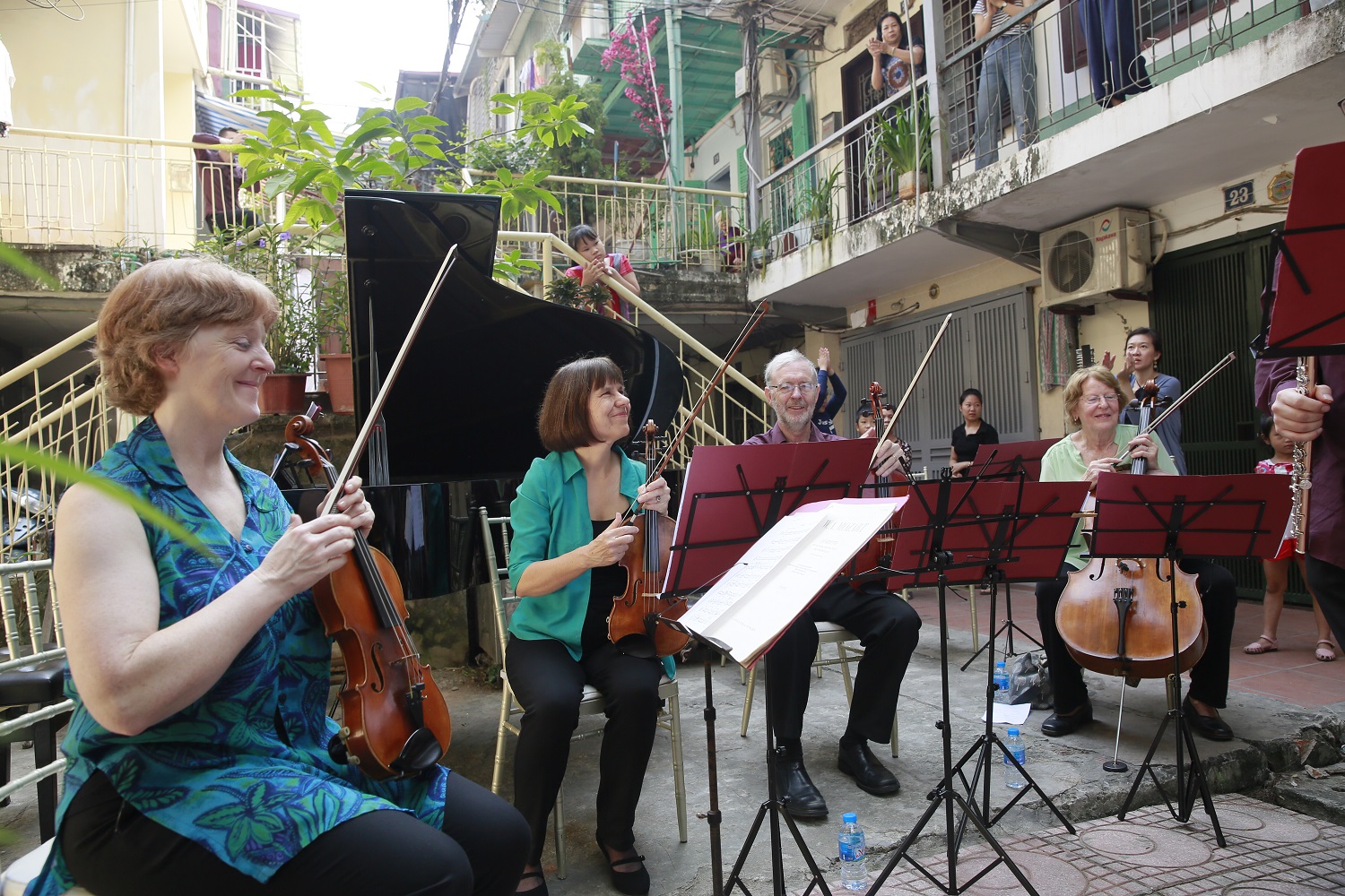 Epiphany had a wonderful time in Vietnam collaborating with the talented young Vietnamese pianist, Trang Trinh. This visit took years of planning and involved some exciting concerts in Hanoi including a new piece, specially written by composer Peter Richards for Trang and Epiphany featuring Vietnamese folk tunes. We also offered Sound Portraits at several of the events. Highlights included a morning playing in a courtyard right in the heart of a local cummunity in Hanoi and a sold-out performance in Hanoi Opera House.
